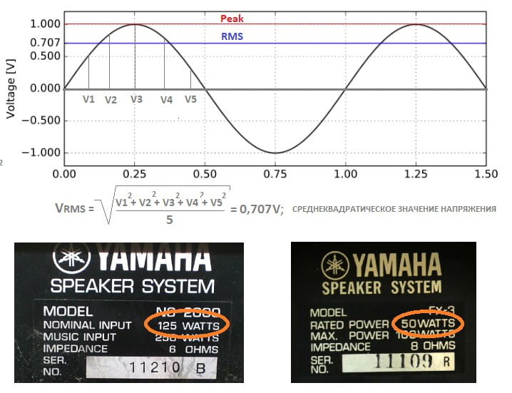 Однако, в спецификации аудио компонента вы не увидите обозначение мощности через Pavg (average/средняя), а обнаружите аббревиатуру RMS Power, что явно некорректно с математической точки зрения, но традиция - есть традиция, она устоялась и даже вошла в стандарт ANSI.