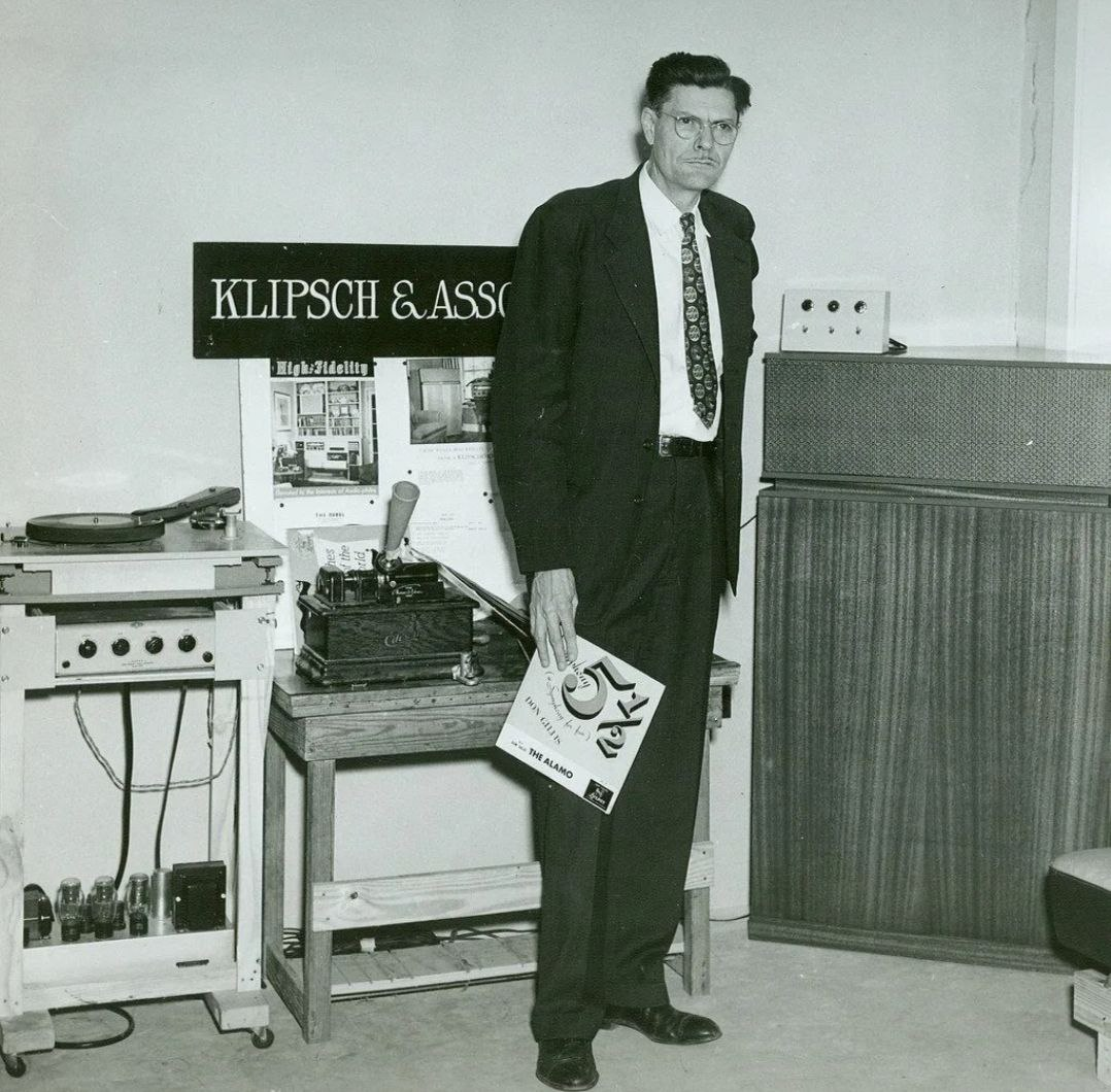 В 1941 году Пол Клипш запатентовал громкоговоритель типа Klipschorn со сложным низкочастотным рупором, который устанавливался в углу комнаты таким образом, чтобы стены и пол помещения эффективно расширяли рупор. Он отличался потрясающей для своего времени мощностью низких частот и имел очень высокий КПД. Его высокочастотная секция имела конструкцию прямого рупора, соединённого с высококомпрессионным драйвером. Однако Klipschorn глухо отыгрывал средний бас из-за ряда резонансов, возникавших при воспроизведении вокала.