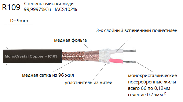 Тип: R109 - готовый балансный, XLR, один канал;Сигнал: аналоговый аудио, балансный;Конструкция: витая пара проводников с двойным экраном;Проводники: посеребренный монокристалл меди OCC (66 жил по d=0.12mm); cлой Ag3%;Степень очистки меди: 99,9997%; зонная плавка/очистка; IACS 102%Сечение: 2 х 0.75мм.кв;Диэлектрик: физически вспененный 3-слойный полиэтилен: Skin-Foam-Skin; ε=1.5-1.64;Экранирование: медная фольга и плетеный медный экран (96 жил по d=0,12мм);Внешний диэлектрик: чёрный PVC, два слоя, D=9.0мм;LCR параметры при 10kHz: Сопротивление: Rs=0.024Ω/m; Ёмкость: Сp= 45.800pF/m;Индуктивность: Ls=0.953μH/m;Разъемы: 3-XLR, металлические, воронение типа gun-metal. Материал разъёма: внешний корпус: высокопрочный алюминиевый сплав АА2011, контактная группа: позолоченная омеднённая латунь; корпус без резиновых задников - полностью металлический!Длина разъёма 70мм; Оптимальное расстояние от задней панели усилителя до стены (для размещения данного разъема с учетом выхода и допустимого изгиба кабеля) равно 12-13см;Производство: Тайвань;Поставка: один кабель 1XLR-1XLR;Рекомендации: посеребренная монокристаллическая медь отличается высокой скоростью передачи сигнала, звук становится фактурным, с чёткой детализацией. R390 кабель великолепно отыгрывает как симфонические фрагменты, так и все элементы джаз-рока, рока и электронной музыки. Он позволит вам по-новому услышать виниловые пластинки, сделать теплый ламповый звук более очерченным и динамичным. Записи Hi Res поразят вас раскрытой сценой: вы услышите все мелкие детали, сразу определите ширину и глубину сцены. Вам станут доступны мельчайшие нюансы посторонних шумов в оркестровой яме и зале. Звук станет воздушным с небольшим акцентом на верхней середине. Высокие станут более подчеркнутыми, а бас объёмным и упругим. Если есть шероховатости в записи, то 390-й их подчеркнет обязательно. Если есть необходимость в универсальности и нейтральности с хорошей сценой, то советуем отслушать чистый медный монокристалл у R310 кабеля за меньшую цену.⚡Возможно изготовление кабелей нестандартных длин по желанию покупателя.Модификации по металлам/звучанию: R390⚫ посеребр. монокристаллR310🔵 монокристалл медиR389🔴 посеребренная медь R386🟢 медь бескислороднаяКонсультации: 8-800-700-5779Где посмотреть: Москва, Земляной Вал 65Тестирование на дому: возможноДоставка и оплата: 👉в пункте CDEKЦена указана за готовую пару