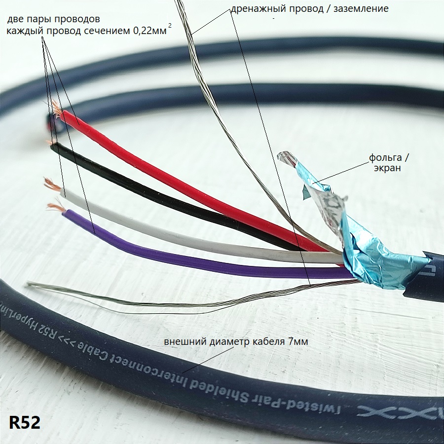 Тип сигнала: аналоговый аудио, балансный, небалансный; данные и питание (USB)Конструкция: 2 пары с экраном из фольги;Проводники: бескислородная медь (28жил по d=0.10mm), степень очистки 99,99%;Сечение проводников 4х0,22 кв. мм;Экранирование: фольга;Внешний диаметр кабеля - 7мм;Диэлектрик: вспененный полиэтилен;Разъемы: нет;На катушках по 100мПродажа: по метражу.