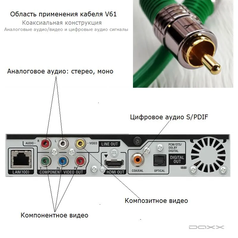 Применение: для подключения аудио компонентов класса HiFi; V61 предназначен для производства стерео пар, сабвуферных кабелей, видео кабелей всех типов, цифровых аудио кабелей (coax/spdif), а также антенных кабелей.Выбирайте цвет кабеля: зеленый, красный или синий.Укажите цвет в комментарии к заказу.Если цвет не указан, то продан будет зеленый кабель.